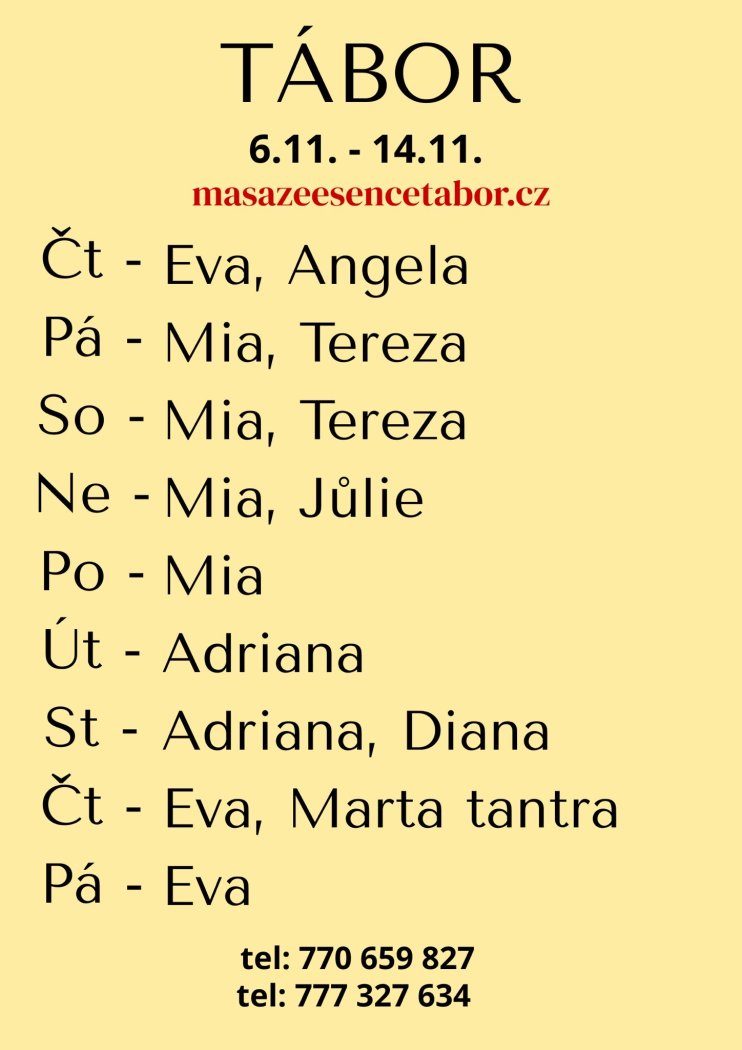 | Pátek | Na dotaz |
