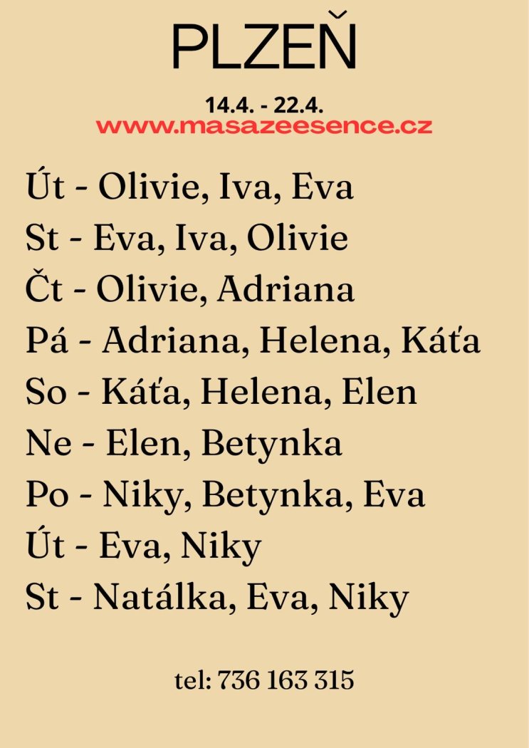 | Místo pro setkání: | Masážní salón |